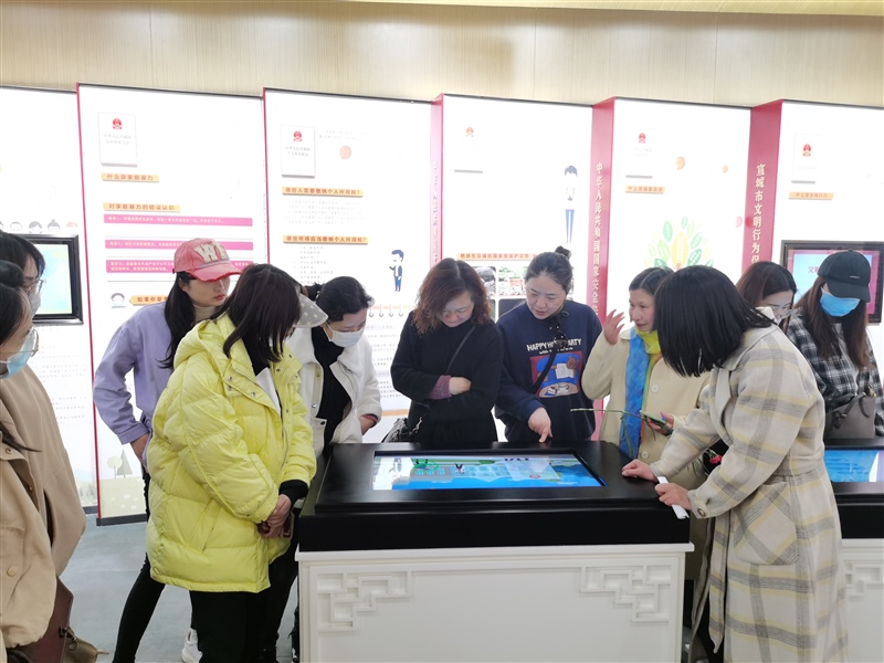 隨后,“娘子軍”們前往宣城宛陵湖法治文化館參觀。大家認真聆聽講解員的講解,依次參觀了“尊法學法”“守法用法”“普法路上”三個展區(qū),現場學習了法治文化,觀看了宣城市普法宣傳片和法治故事短片,體驗了法治模擬場景。通過參觀學習,進一步增強了她們尊法學法守法用法意識,將法治觀念融入今后工作和生活中,做到廉潔從業(yè),依法履職。