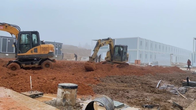 2月14日,宣州區(qū)疫情防控臨時(shí)隔離點(diǎn)項(xiàng)目現(xiàn)場機(jī)器聲轟鳴、腳步聲交響,新一天的施工作業(yè)從漫天大霧的清晨里井而有序的展開。