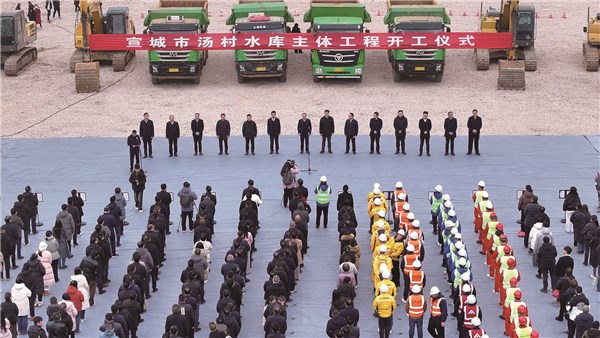 俞志剛說,今天,承載著86萬宣州人民60年期盼、16年努力的湯村水庫主體工程正式開工,此時(shí)此刻,回顧過往,感慨萬千;展望未來,干勁滿懷。星光不問趕路人,時(shí)光不負(fù)有心人。區(qū)委、區(qū)政府和全體參建人員要以湯村水庫主體工程正式開工為新起點(diǎn),保持信心和決心,揚(yáng)鞭奮進(jìn)、奮楫爭先,嚴(yán)把工程建設(shè)質(zhì)量關(guān)、進(jìn)度關(guān)、安全關(guān)和廉潔關(guān),努力把湯村水庫建成優(yōu)質(zhì)工程、提氣工程和廉潔工程,造福宣州人民。